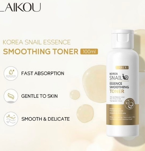 تونر لیفت اسانس حلزون کره ای LAIKOU غنی شده با فیلتر ترشح حلزون، هیالورونات سدیم و عصاره خرفه بوده و تغذیه و آبرسانی عمیقی به پوست شما می دهد.
