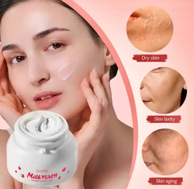 ماسک خواب شیر و هلو سادور سرشار از ویتامین است که ترمیم کننده پوست و روشن کننده پوست است.